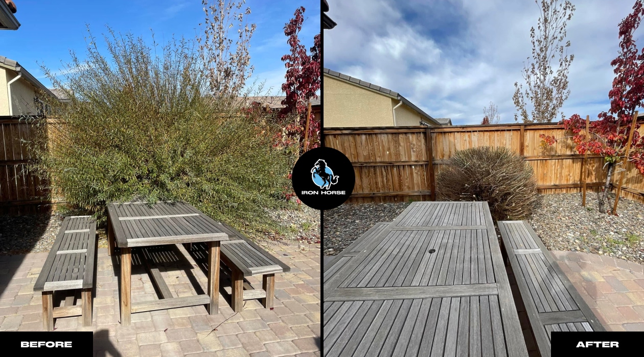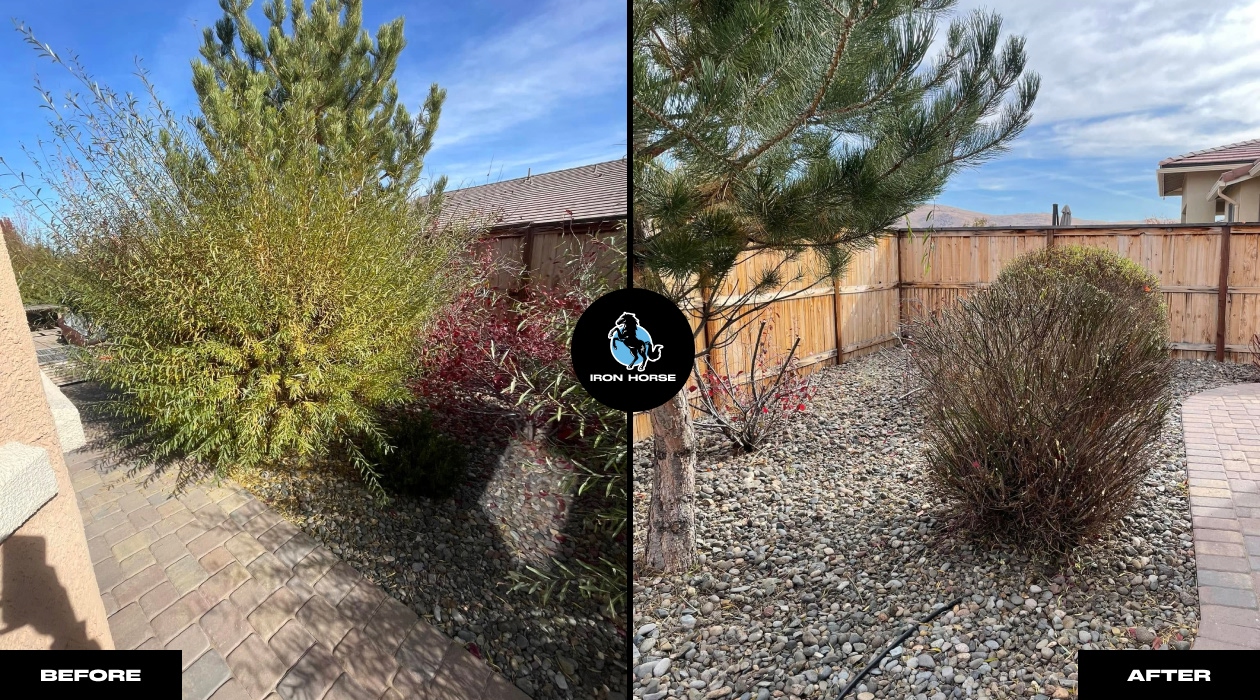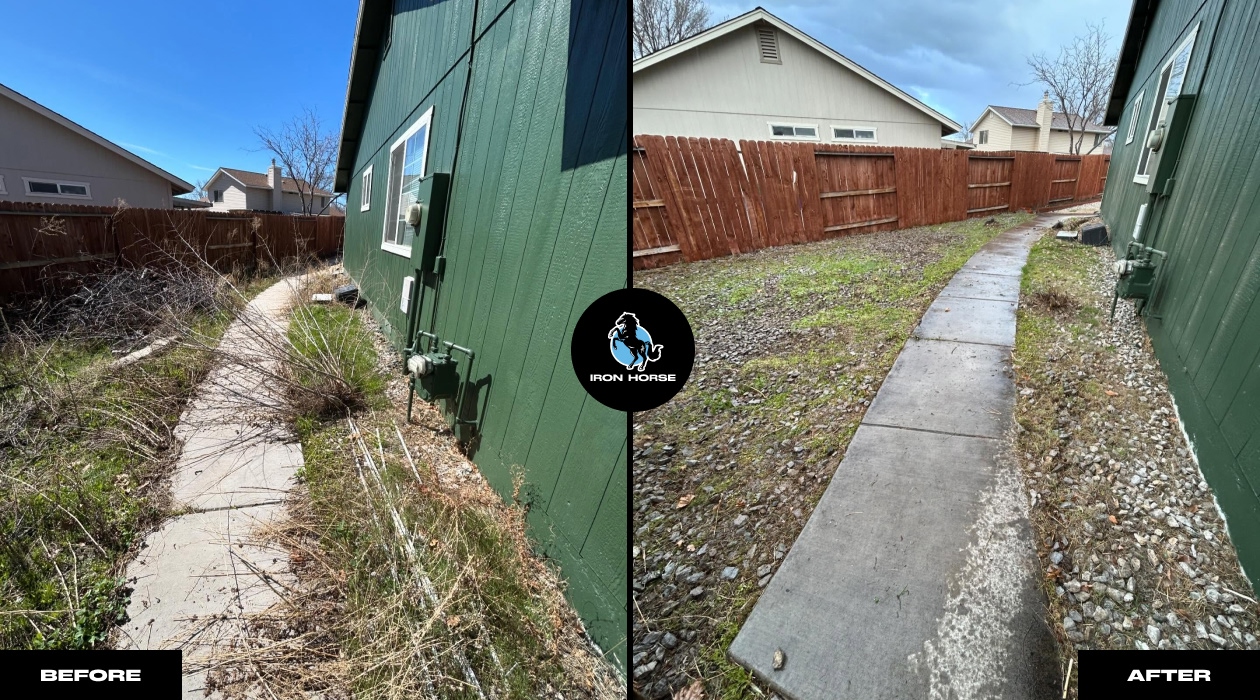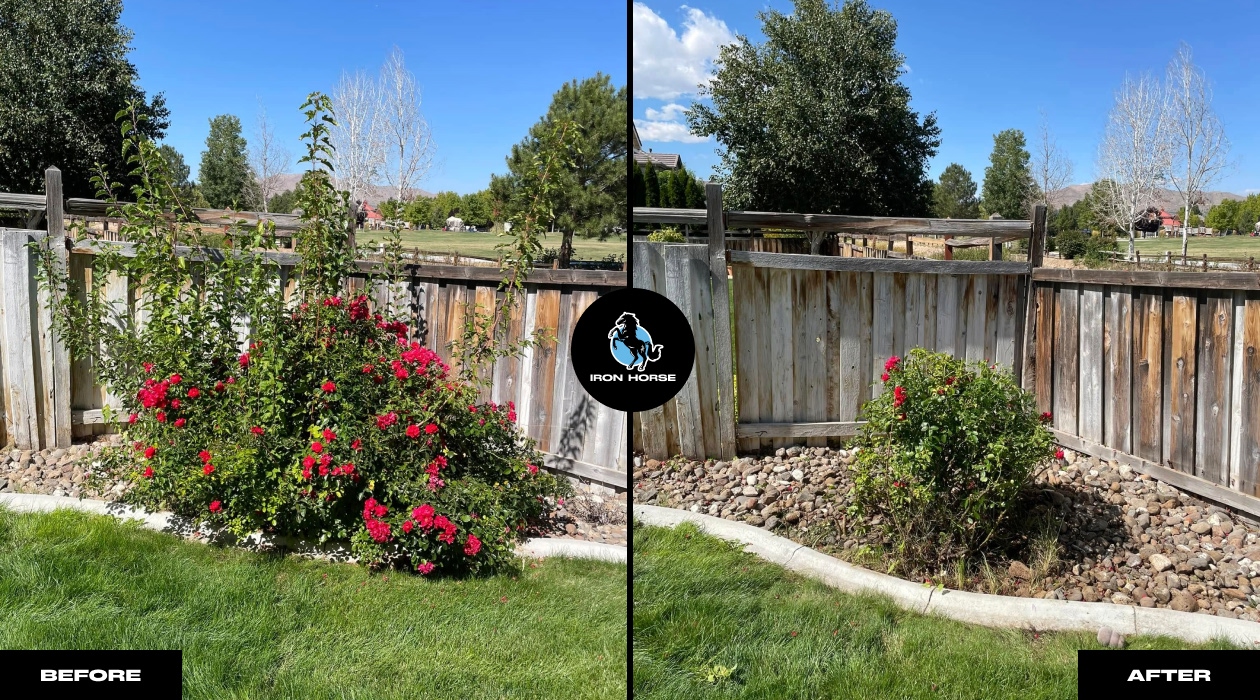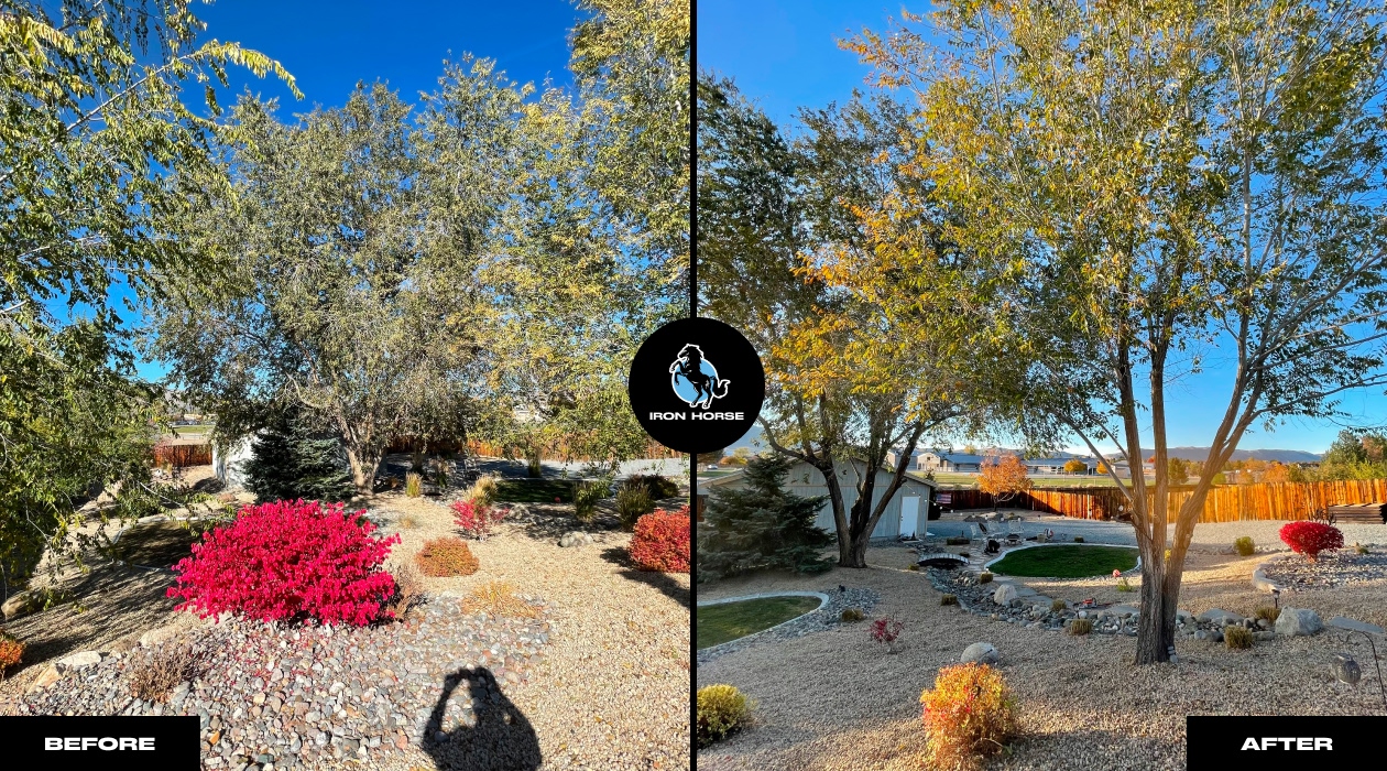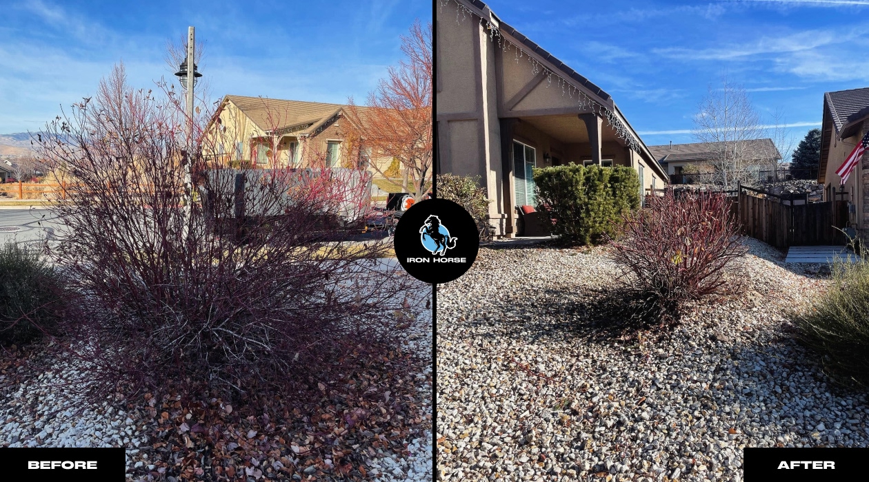 "Ben and his crew made short work of removing some 35 year old junipers that had grown old and scraggly in a portion of our front yard. It was an extremely messy job and the cleanup was perfect! We can't wait for Iron Horse to come back and lay some DG, trees and plants. Thank you Ben!"